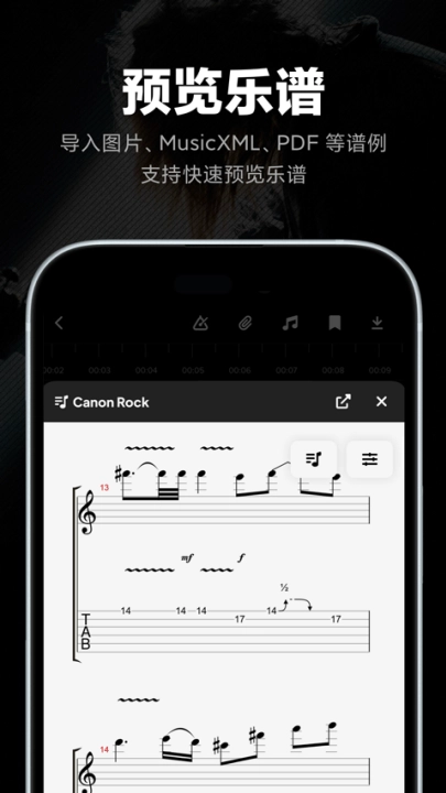 1、用手机拍摄纸质乐谱,能直接将其转换成可编辑的数字谱,还可同步对照音频进行播放。