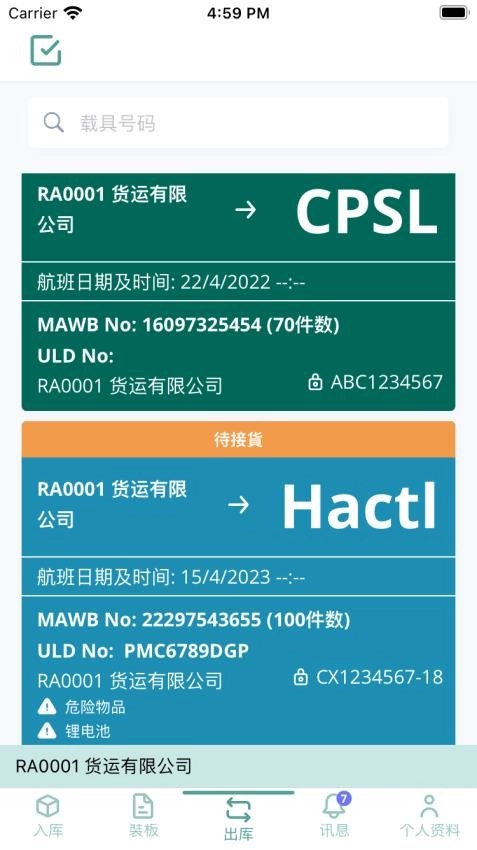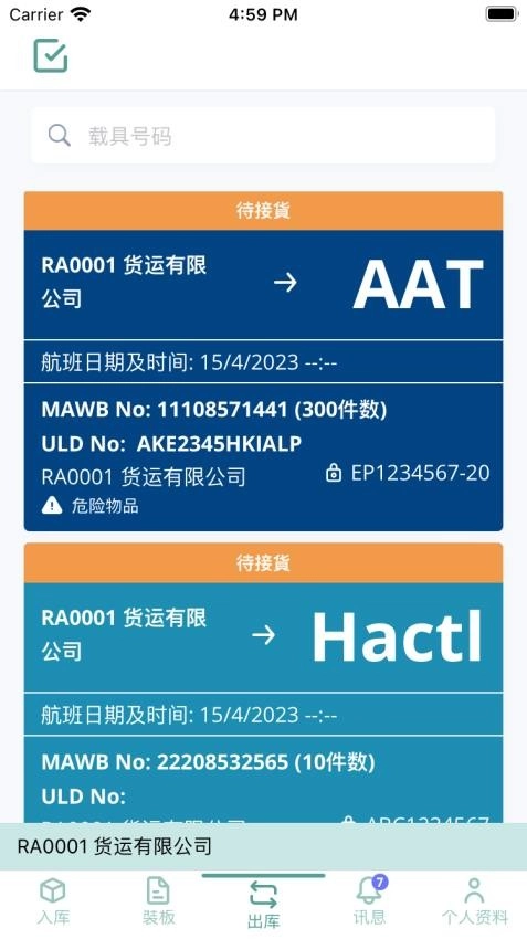 3、在航班查询栏中输入载具编号,实时获取航班动态,以此安排装货时间,确保货物准时送达。
