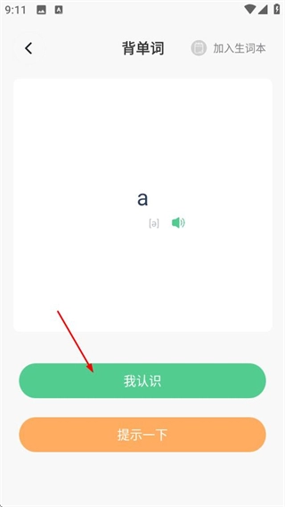3、在背单词页面,点击“我认识”按钮,即可完成当前单词的背诵任务。