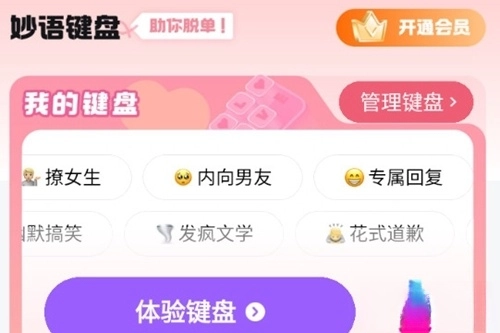 《妙语键盘》是一款功能多样的趣味聊天键盘应用,它是专门为恋爱聊天场景设计的。这款软件能为用户持续提供丰富的聊天话题,有效避免用户交流时出现冷场情况。它的操作十分简便,用户进入软件后,只需先设置个人相关信息,软件就会依据这些信息生成专属的聊天键盘,帮助用户轻松开启话题,踏上浪漫的聊天旅程。