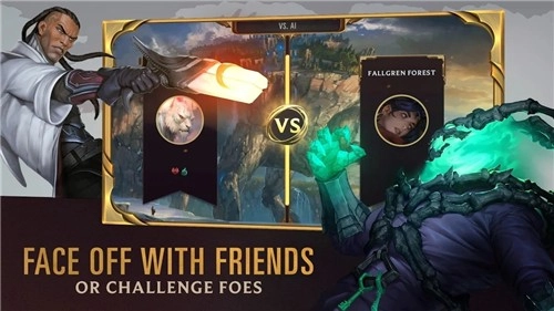 决一死战:和好友一对一较量,让他瞧瞧你的厉害;或是在积分对战里向陌生人发起挑战。你甚至可以开启一场远征,沿途招募卡牌来组建你的牌组。