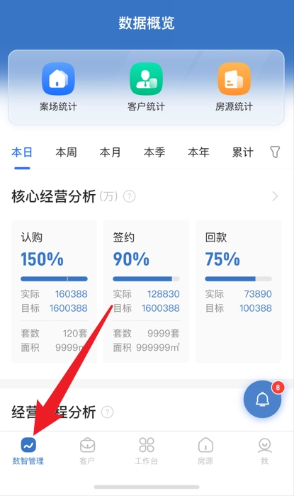 5、查看业绩统计及客户转化数据,优化销售策略方向。