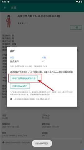 5、若点数不够,可通过观看广告获取额外点数。