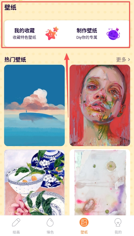 4、“壁纸”页面能够助力你美化屏幕,你既可以“收藏特色壁纸”,也可以点击“制作壁纸”进行DIY专属设计。
