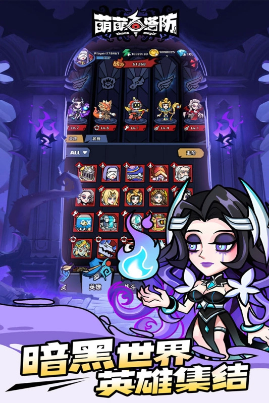 1、在暗黑魔幻的世界里召集各路英雄角色,依据他们的技能特性与属性等要素搭配出作战阵容,以此从容应对所有关卡中的怪物,顺利推进关卡进程。