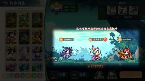 2、搭配阵容时,尽量别让两个三消型英雄同时上场,布阵时只要保持任意组合就行,这样还能拿到额外加成呢!