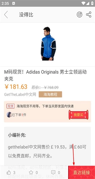 4、进入商品详情页后,查看商品的价格和现货情况,接着点击直达链接按钮,就能进入该商品的购买页面。