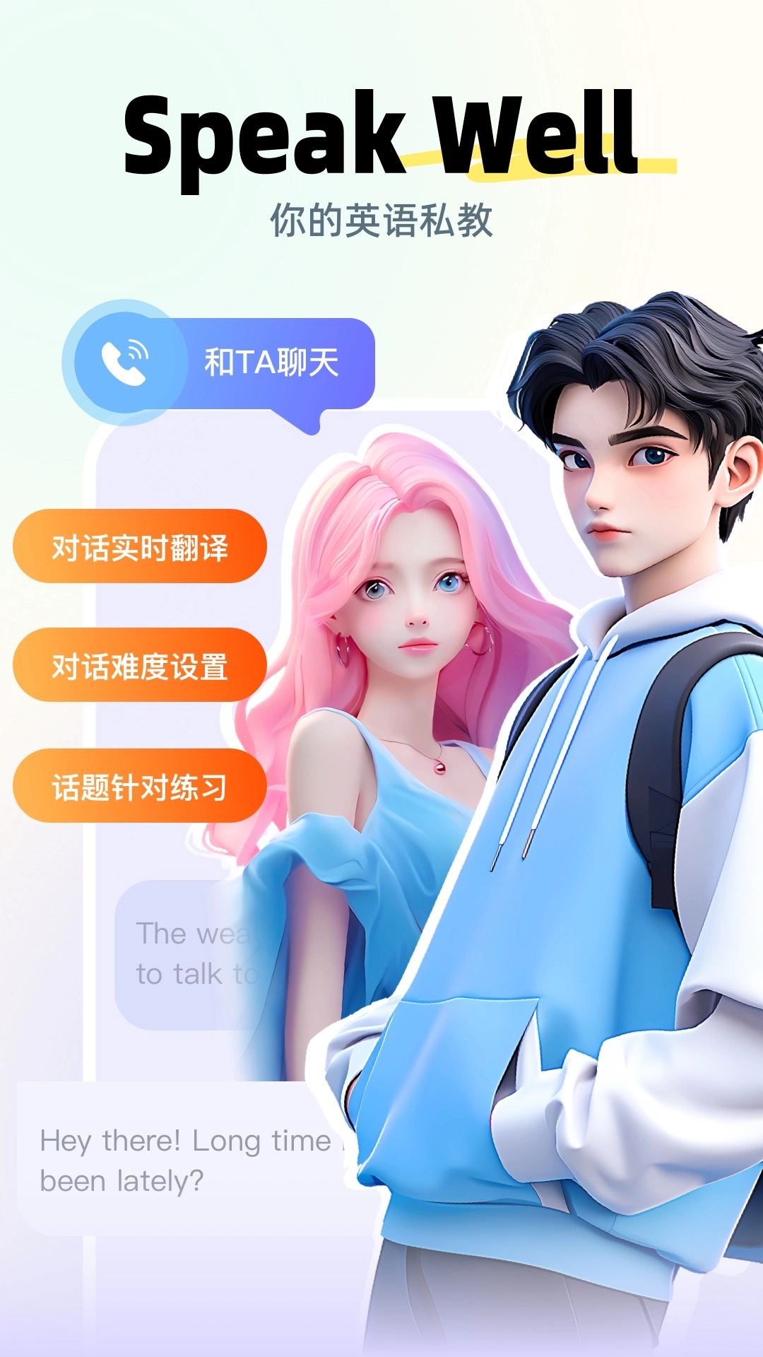 Speak Well是一款专门面向语言学习者打造的交流练习工具,它搭建了一个新颖的平台,助力用户和全球各地的母语者开展实时对话。不管你是刚入门的新手,还是经验丰富的语言爱好者,Speak Well都能契合你提升口语水平的需求,让你在轻松愉悦的环境里高效成长。