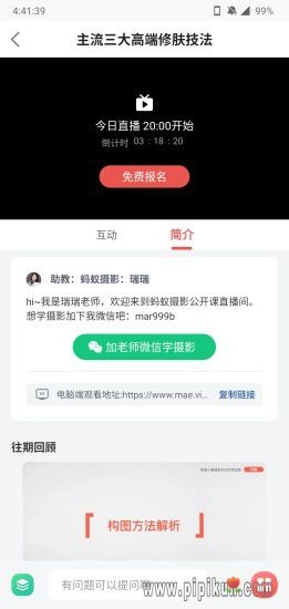 这是一个专为零基础人群打造的摄影技巧学习平台,无论你是谁,都有机会成长为专业摄影师。平台汇聚了大量优质公开课,支持在线直播授课,你可以和老师实时交流,掌握实用的摄影方法,轻松拍出更美的照片。期待你的加入!
