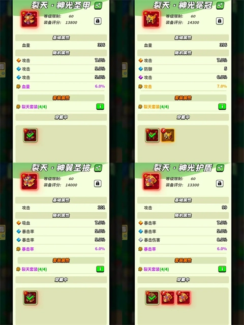 注意啦!裂天套我亲自测试过,确认它的伤害加成是最终伤害额外增加40点!绝对是当前最强的输出套装,没有任何套装能与之媲美!(补充说明一下:裂天套的爆伤+40%机制,是先把面板上的爆伤计算完毕后,再在总伤害的基础上额外叠加40%的加成!)等下我会专门写一篇属性解析的内容,给大家做详细说明!