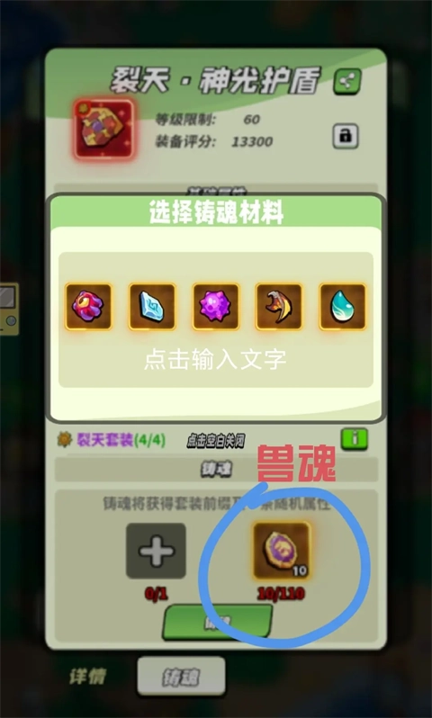 每次为装备铸魂时,都需要消耗一个梦之泪,或是副本产出的材料(比如恶魔孢子)。