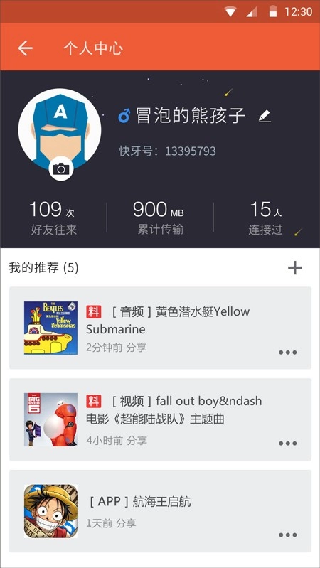 2、借助快牙,你可以和朋友分享手机里动听的音乐、精彩的视频与电影,还有收藏的趣味图片以及个性照片。