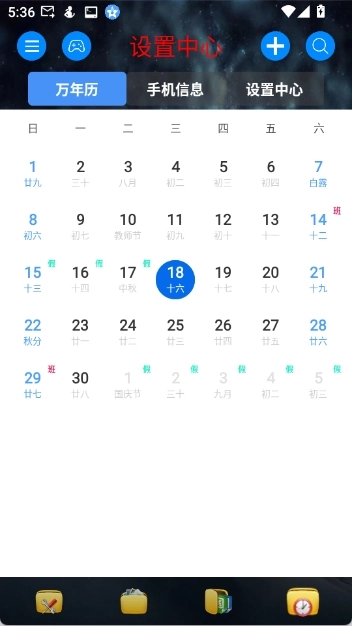 - 万年历:提供农历和公历信息