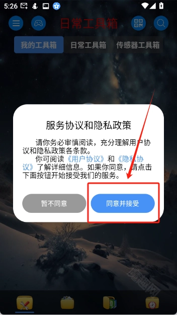 1、首先打开魔趣网,找到并进入太极工具箱,打开软件后点击“同意并接受”
