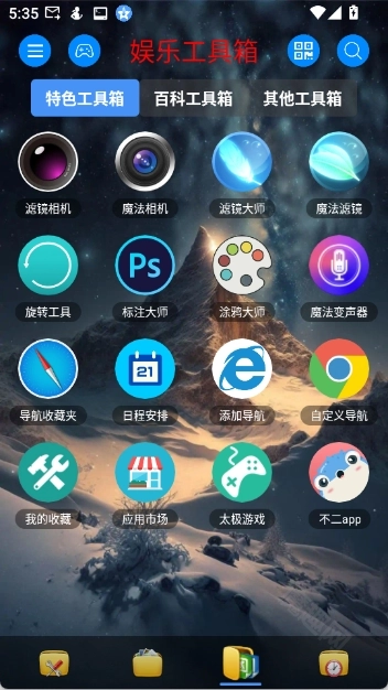 5、点击首页底部第三个文档图标,就能看到里面包含了各类娱乐工具箱,像相机、日历、模拟乐器弹奏等功能都在其中。