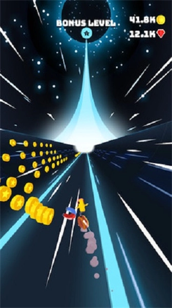 3、你要做的就是在各式各样奇特的赛道上,通过左右触控来操控角色移动。