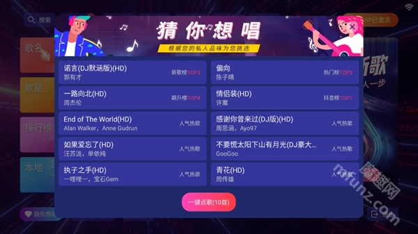 1、【猜你想唱】功能支持一键点歌,可一次性为您点选10首系统猜测您想唱的歌曲。