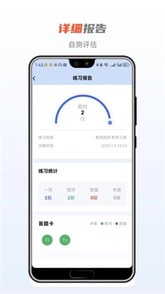 查看分析报告:提交试卷后,系统会自动生成成绩报告,其中标注了正确率、薄弱知识点以及排名情况,能够帮助你精准定位复习的重点内容。