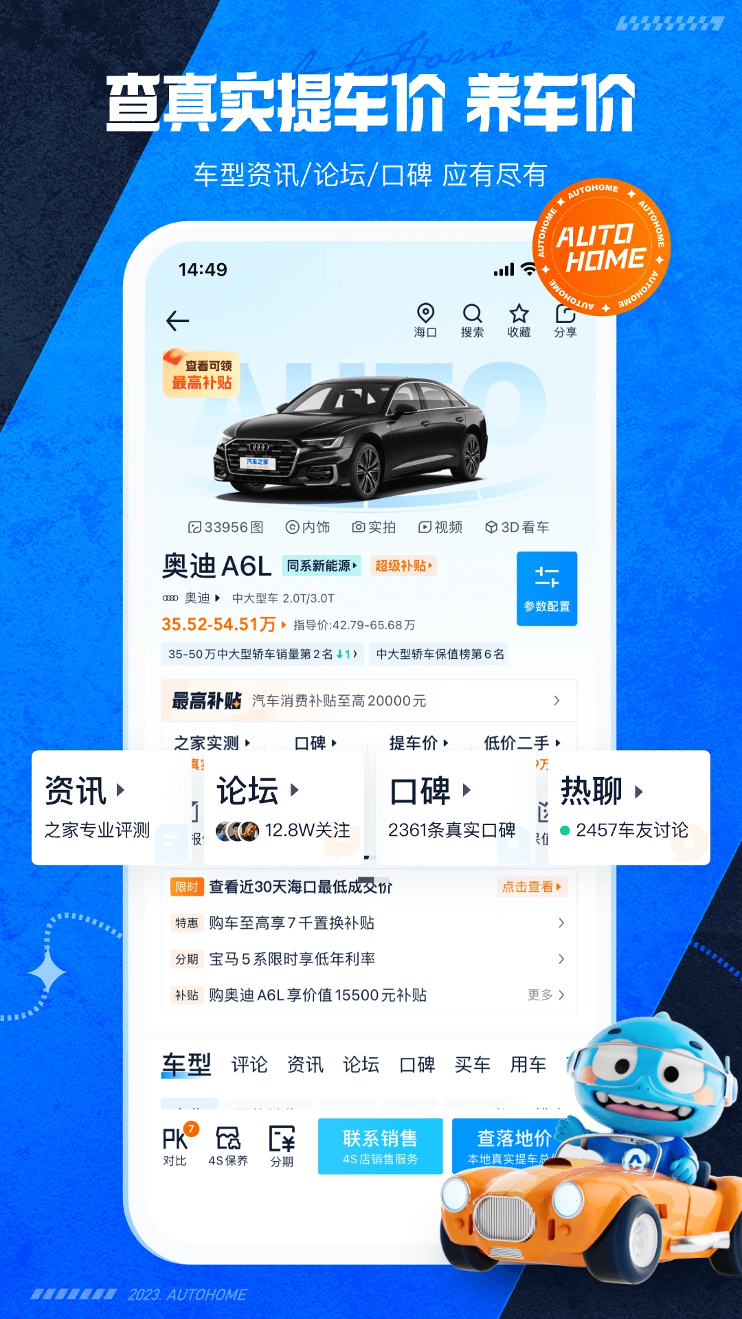 汽车之家是一款广为人知的汽车社区软件,无论你有看车、买车、用车还是换车等需求,都能在汽车之家得到满足。目前平台还有购车补贴活动,相比线下看车,汽车之家具备更多优势:你可以在这里对比不同车型、查询车架号对应的车辆信息、查找附近的维修店,随时使用随时查询,车辆信息展示也更为直观。要是拿不定主意,还能参考其他车主对车辆的评论和讨论。