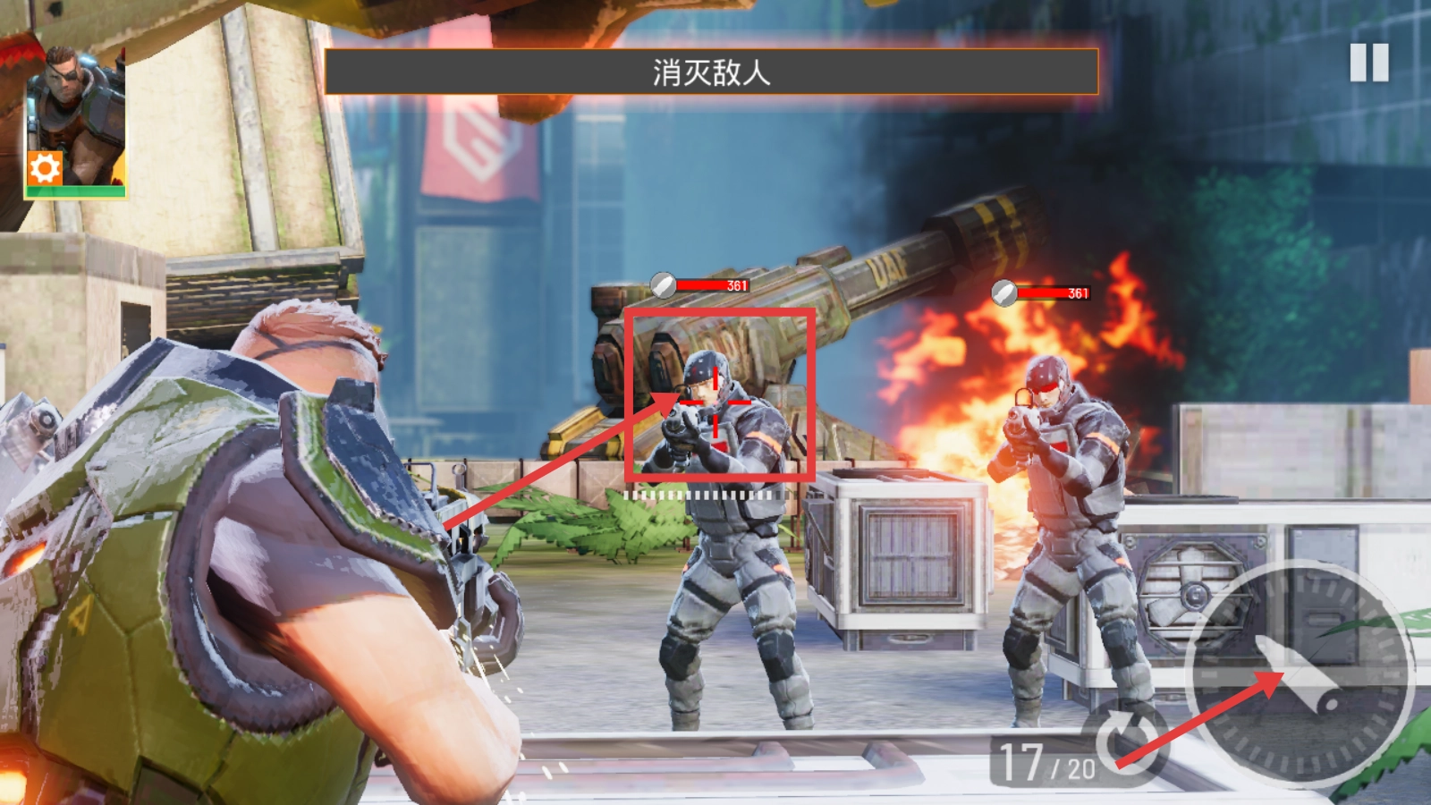 2、在【消灭敌人】任务里,要瞄准敌人的要害部位进行射击,借助右下角的射击机制来保持持续输出,从而快速消灭所有敌方单位。