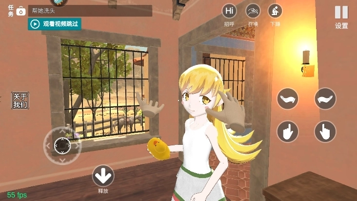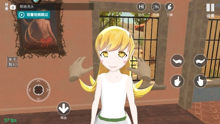 互动玩法:当小忍身旁出现手、脸这类互动图标时,点击对应图标就能进行摸头、牵手等互动,以此提升好感度。