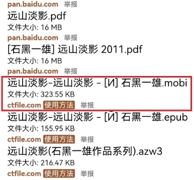 3、筛选资源格式:点击【mobi】按钮筛选资源,优先挑选mobi格式,其次可选择epub、azw3以及pdf格式;