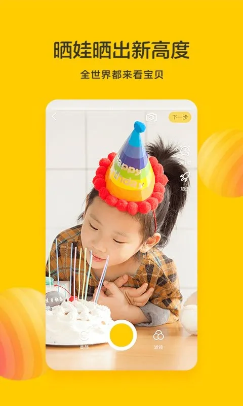 4. 助力拍摄创作:拍摄制作环节配备海量歌曲配音、特色模板与美颜滤镜,为用户提供丰富拍摄灵感,助力用户在晒娃时展现更出色的创意与效果。