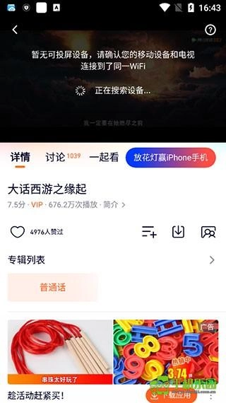 4、等待搜索附近的电视,点击即可投屏。
