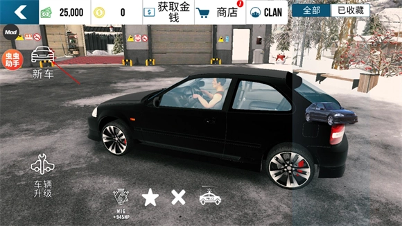 2、进入车库后点击左边的新车按钮。