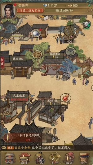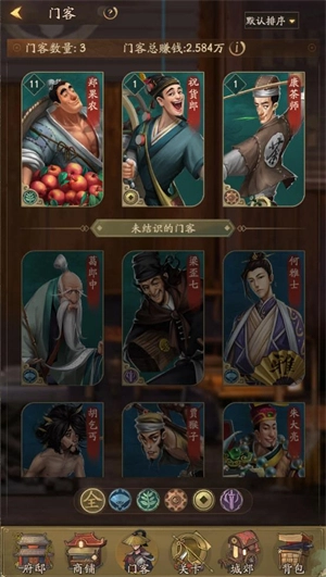 3、海量门客正待你招募与培养,每位门客都能为你带来丰富多样的经营增益。