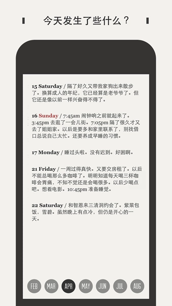 回顾功能:借助时间轴的呈现形式,用户能够便捷地查看过往的日记,回味那些美好的记忆。