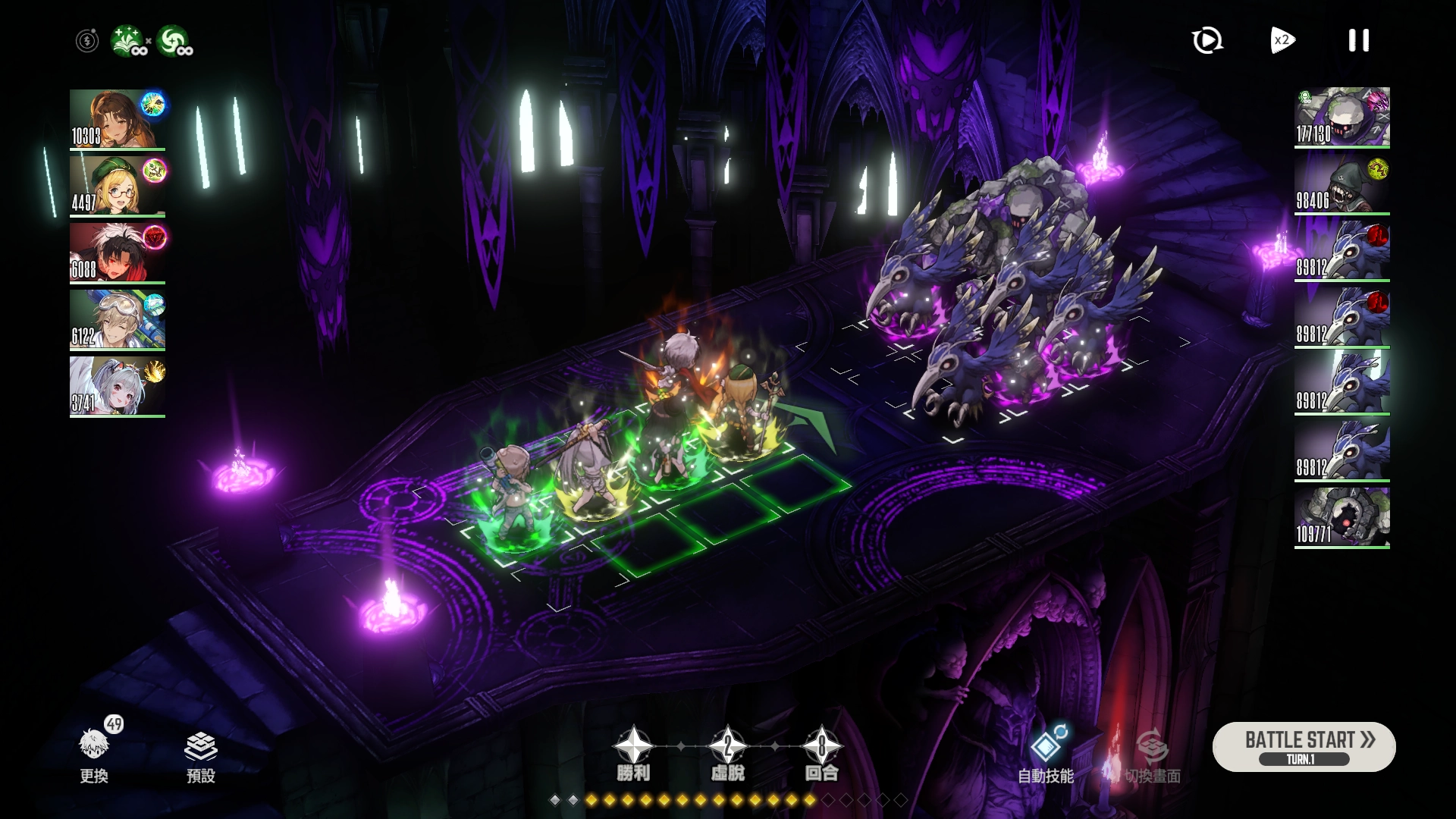 3、游戏里的竞技场采用自动战斗模式,玩家无法直接操控角色,仅能设置出手顺序与技能释放顺序。左侧人物头像的排列顺序决定了角色的出手先后,而设定服装顺序对应的是指定角色在第几回合释放何种技能。