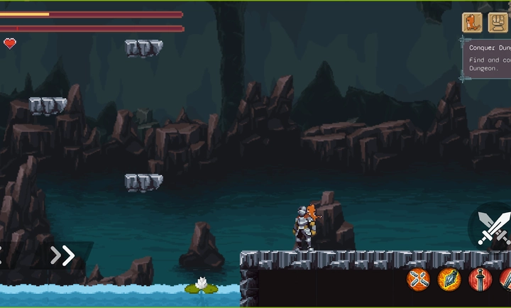 1、玩家进入关卡后,可通过左侧按键操控角色,右侧按键则用于实现快速跳跃与攻击操作。