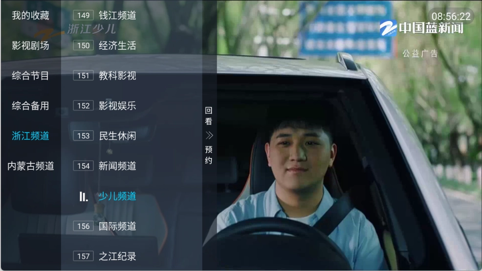 2、点击屏幕可以看到左侧栏中有很多的电视频道。