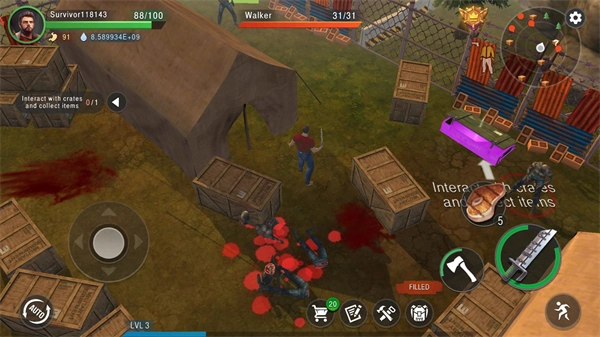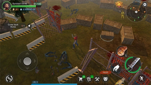 4、地图中会出现形形色色的僵尸怪物,你需要利用武器对这些僵尸发起攻击,防止它们逼近你的避难所。