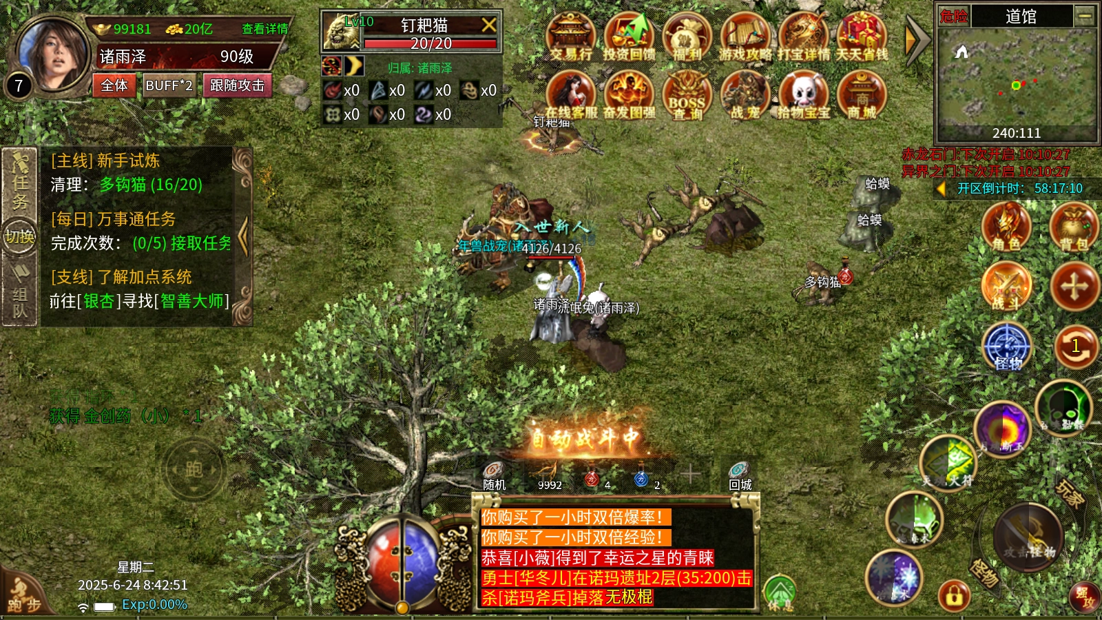 3、本服务器所有装备均开放爆率,高级装备既能通过打怪爆出,也支持合成获取,每个人都有机会追寻心仪的装备。