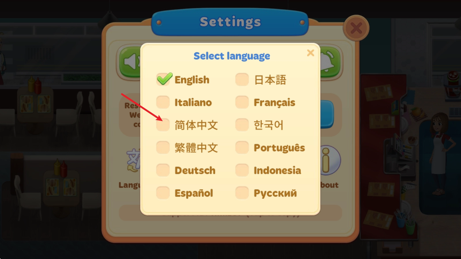 3、找到简体中文后勾选即可成功切换。