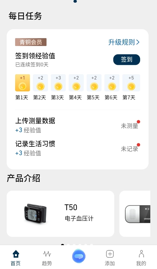 1.自动数据同步:应用可借助蓝牙无线连接欧姆龙设备,自动上传并整合血压、体重等测量数据,无需手动输入就能生成连续的健康趋势图表。