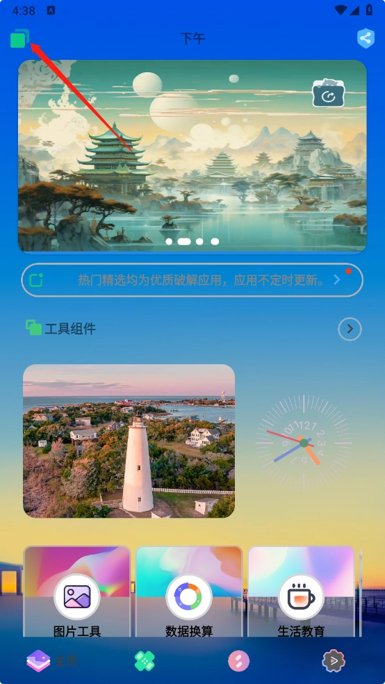 底部栏包含工具、游戏、应用等多个板块。
