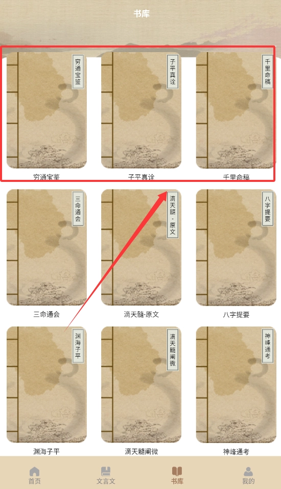 4、书库里面收藏了大量古籍,比如穷通宝鉴,排列得整整齐齐,点击封面就能直接开始阅读了呀。