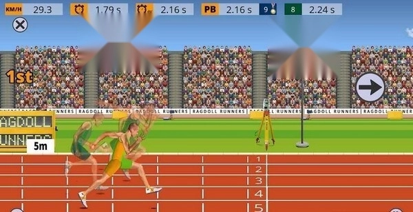 2、根据游戏中的障碍物或者运动时机进行有节奏的按键,并且在物理引擎的条件下控制好方向。游戏中主要操控运动员的两条腿,每条腿都会有一个按钮。