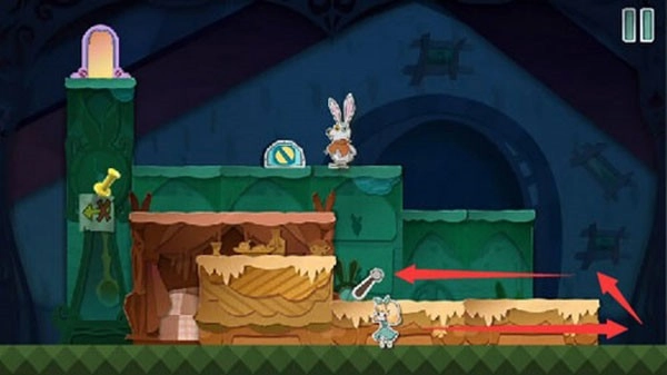 根据教学指引,把红色方块往左拖动,把兔子的图案拼接完整就能触发对话。