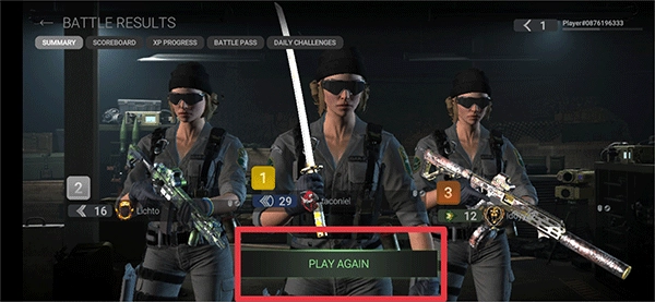 对局结束后,你能查看自己的游戏数据,要是想和刚才的队友继续组队开一把,点击对应按钮就能重新开始。