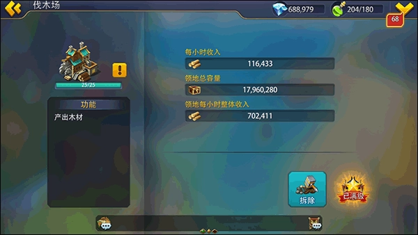伐木场、矿坑、采石场、农场都属于游戏内的资源类建筑,能够建造在城堡周边的草地、冰川等区域,这些建筑共享19座的最大建造数量上限,玩家可以根据自己的需求自由组合搭配。当提升这些资源建筑的等级时,不仅能提高对应资源的产出速率,还能增加资源的储存容量。在游戏里,资源是推动城镇发展的核心要素,可用于科技研发、建筑升级、军队训练等多个方面。