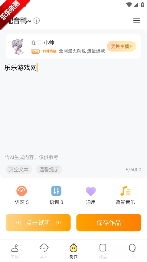 试听满意后,点击“保存作品”或“立即合成制作”,作品就会存储到“作品”页面中。