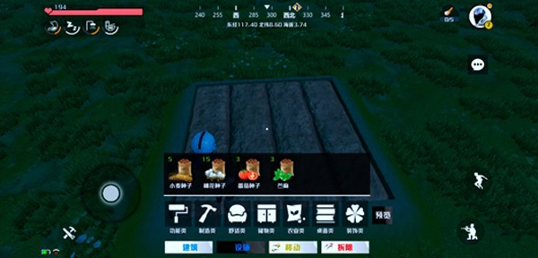 接下来打开左下角的建造功能,选择地基选项,在计划用于耕种的区域摆放地基。