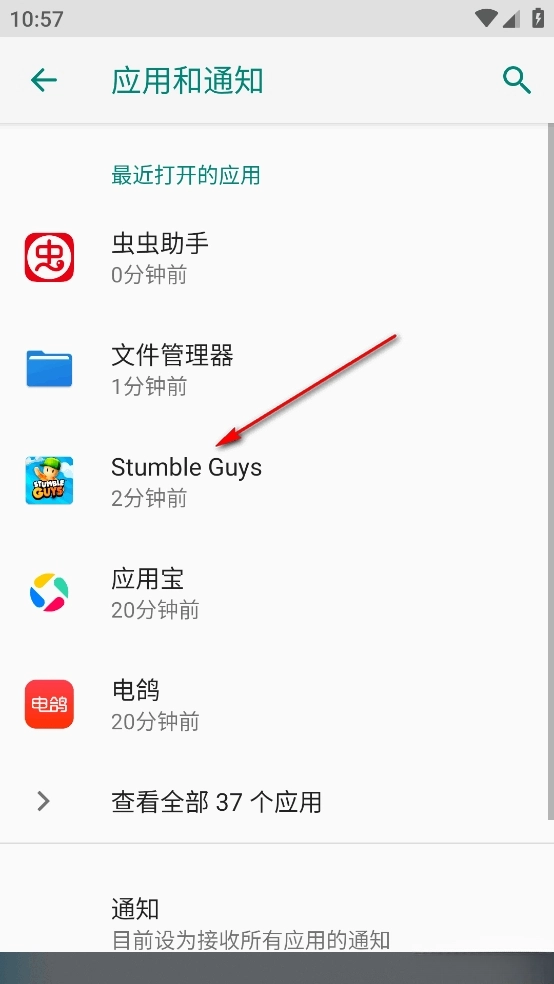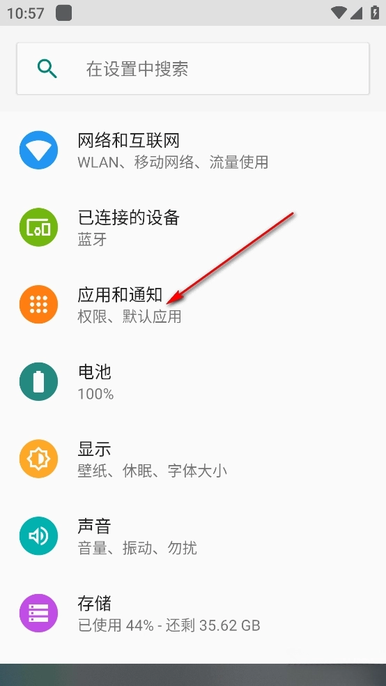 要是没有弹出窗口的话,就进入手机的【设置】选项,再点击【应用和通知】这一栏。