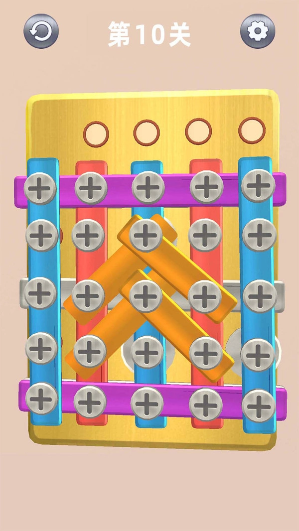 前期关卡的螺丝数量较少,到了后期关卡,螺丝数量会逐渐增多,并且它们分布在形状不规则的铁板上,放置的位置也比较隐蔽,这就使得定位的难度有所增加。