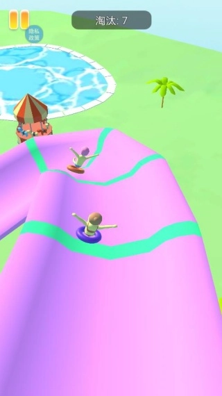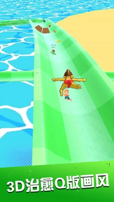 采用3D治愈系Q版美术风格,水上乐园的场景色彩鲜亮明快、造型萌趣可爱,滑道、水花等各类元素的细节刻画生动鲜活,为玩家营造出轻松愉悦的视觉感受。