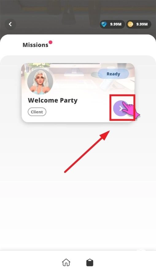 打开闪耀时尚明星游戏,进入首页后,点击页面下方的按钮,查看相关任务。